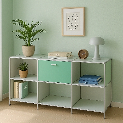 컬러 조합이 감각적인 플랫포인트 수납장. 모듈 구조라 자취방·원룸에도 완벽하게 들어맞아!