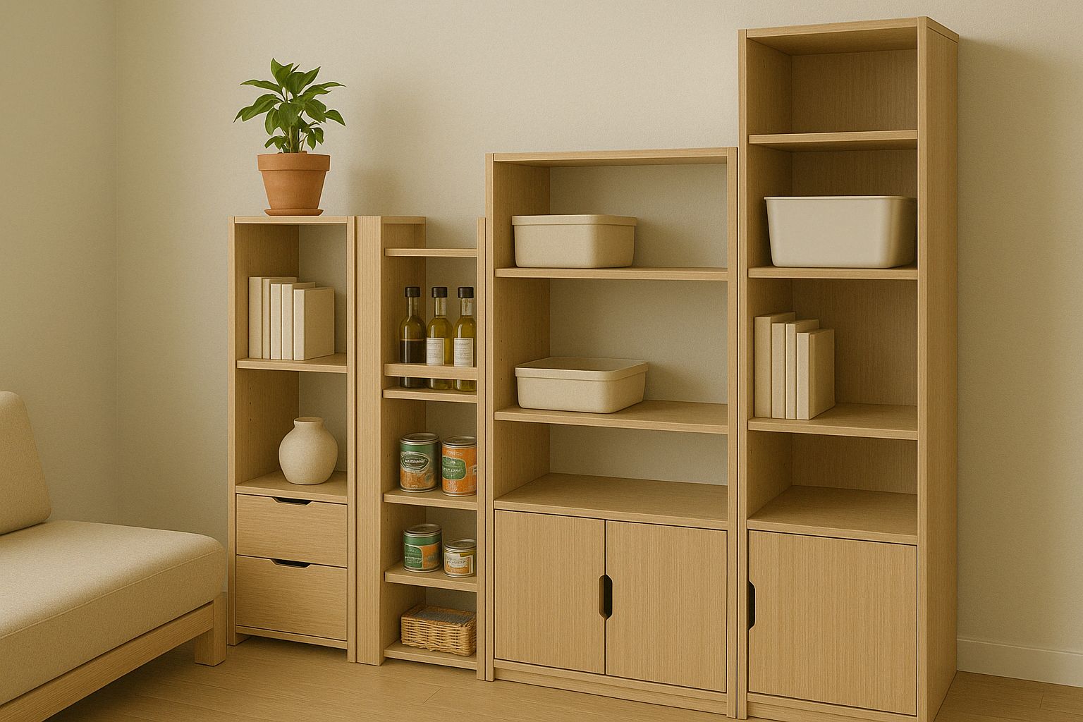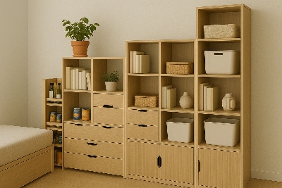 모듈형 수납 가구는 나만의 구조로 자유롭게 조합 가능해요.