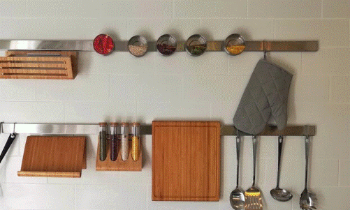 - 냉장고 옆은 마그네틱 수납존이에요. 위생장갑, 키친타월 가위까지 딱 붙여서 정리!