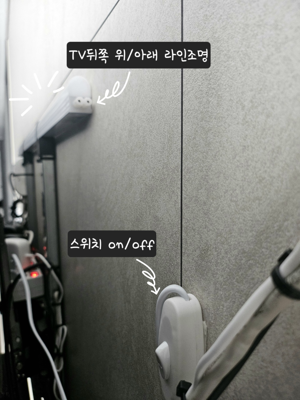 ✅ TV 라인조명은 위아래 설치하고, 스위치로 on/off 가능! 케이블타이로 고정해서 설치도 정말 쉬워요.