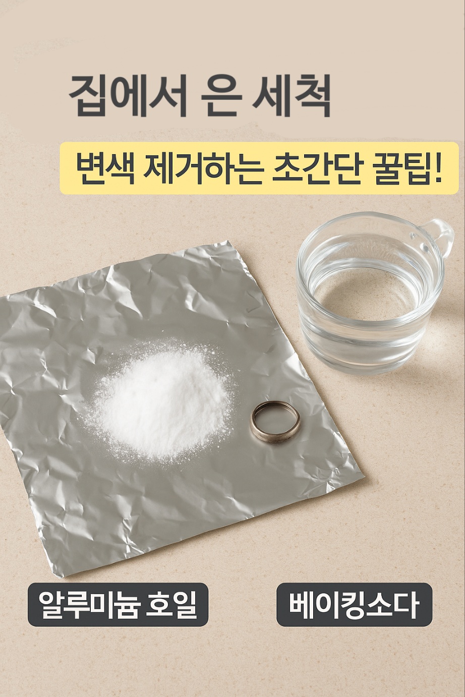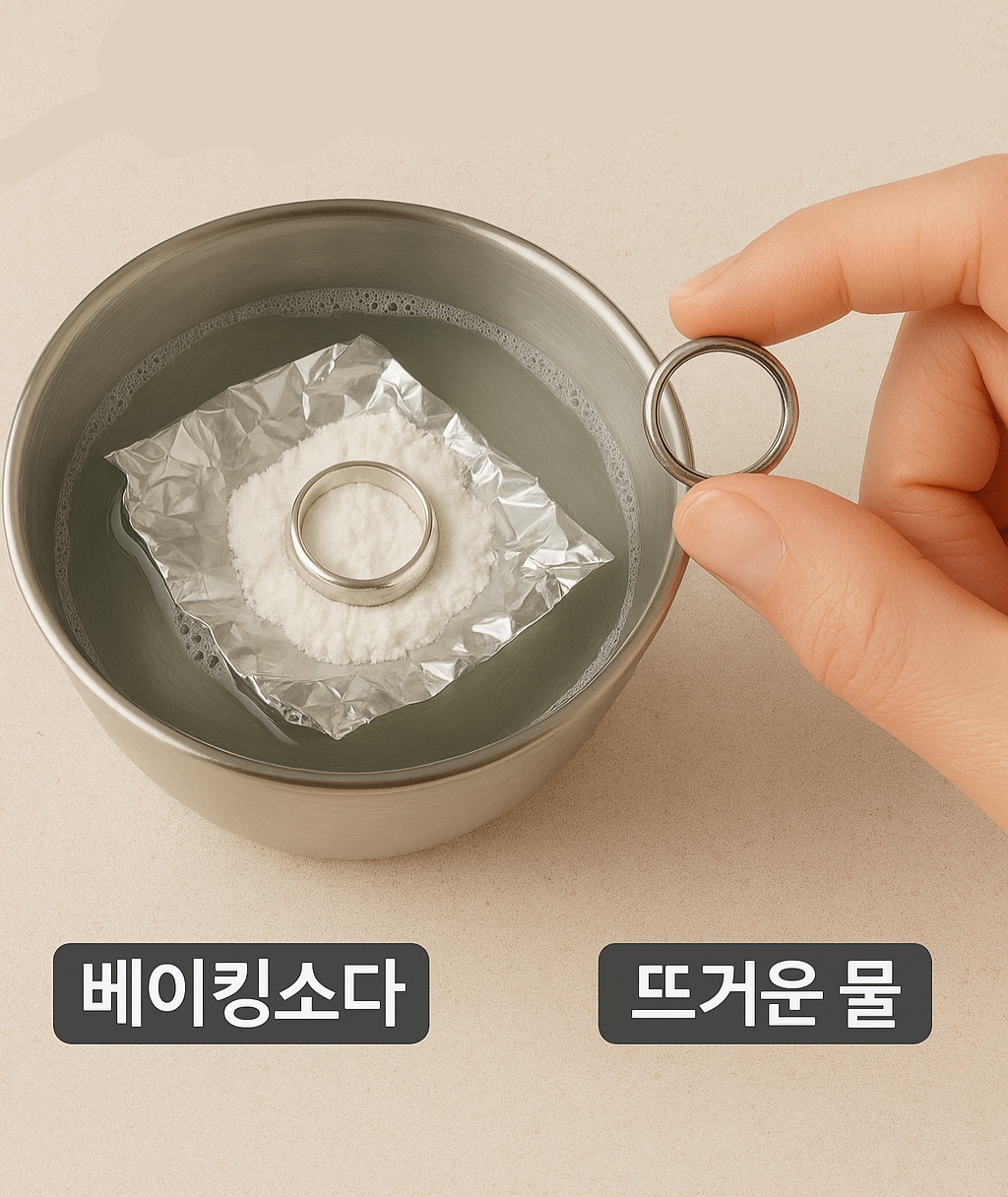 “ 준비물 – 호일 , 베이킹소다 , 은반지 , 물 ” 집에서 하는 은세척 방법 STEP 4