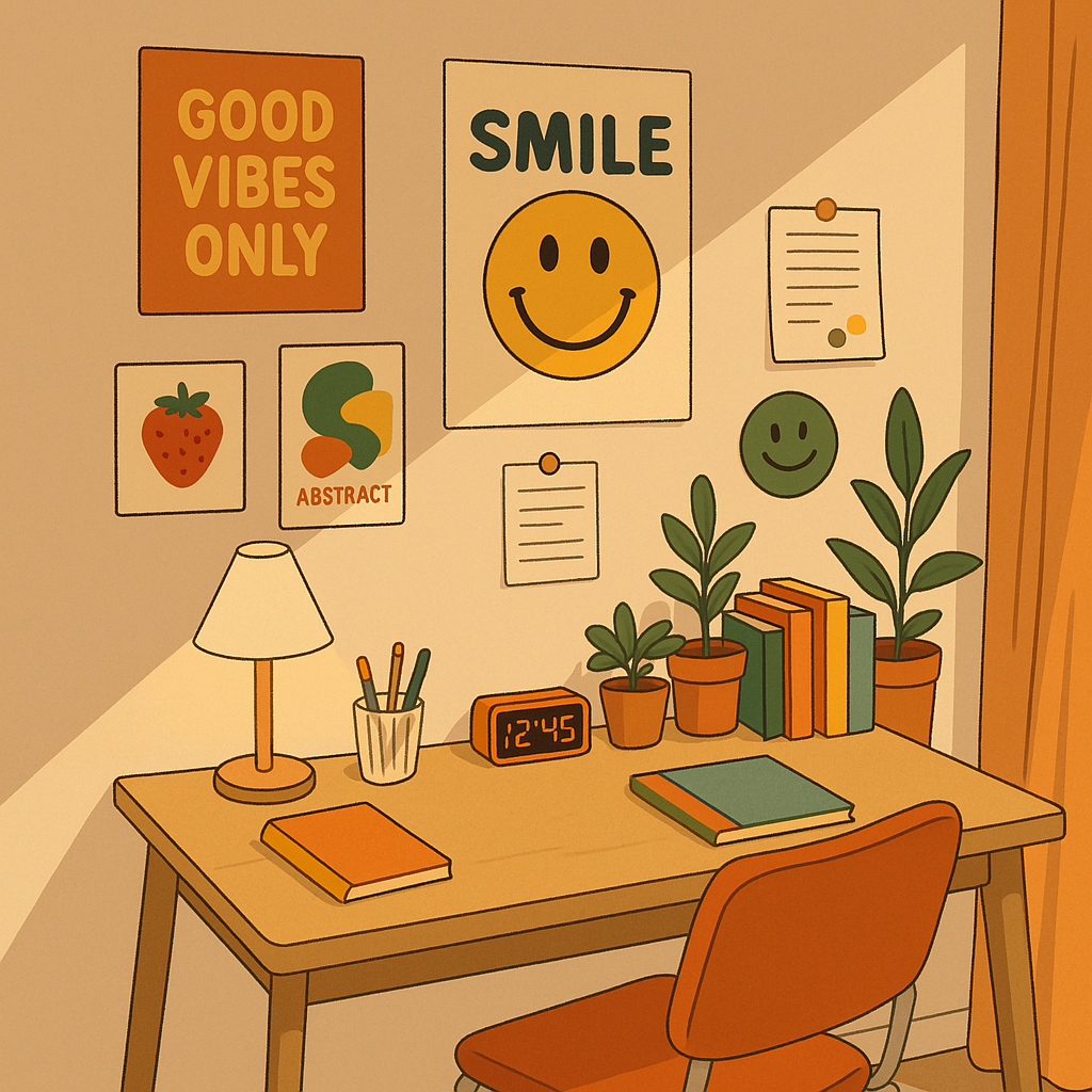 Z세대는 과거를 새롭게 즐길 줄 아는 세대입니다. 레트로 무드에 미니멀 감성을 더한 뉴트로 스타일은 지금 Z세대 방에서 가장 많이 보이는 조합이에요. 체크 패턴, 원색 플라스틱 가구, CRT 느낌의 조명까지! 복고풍 소품이 다시 주목받고 있죠.